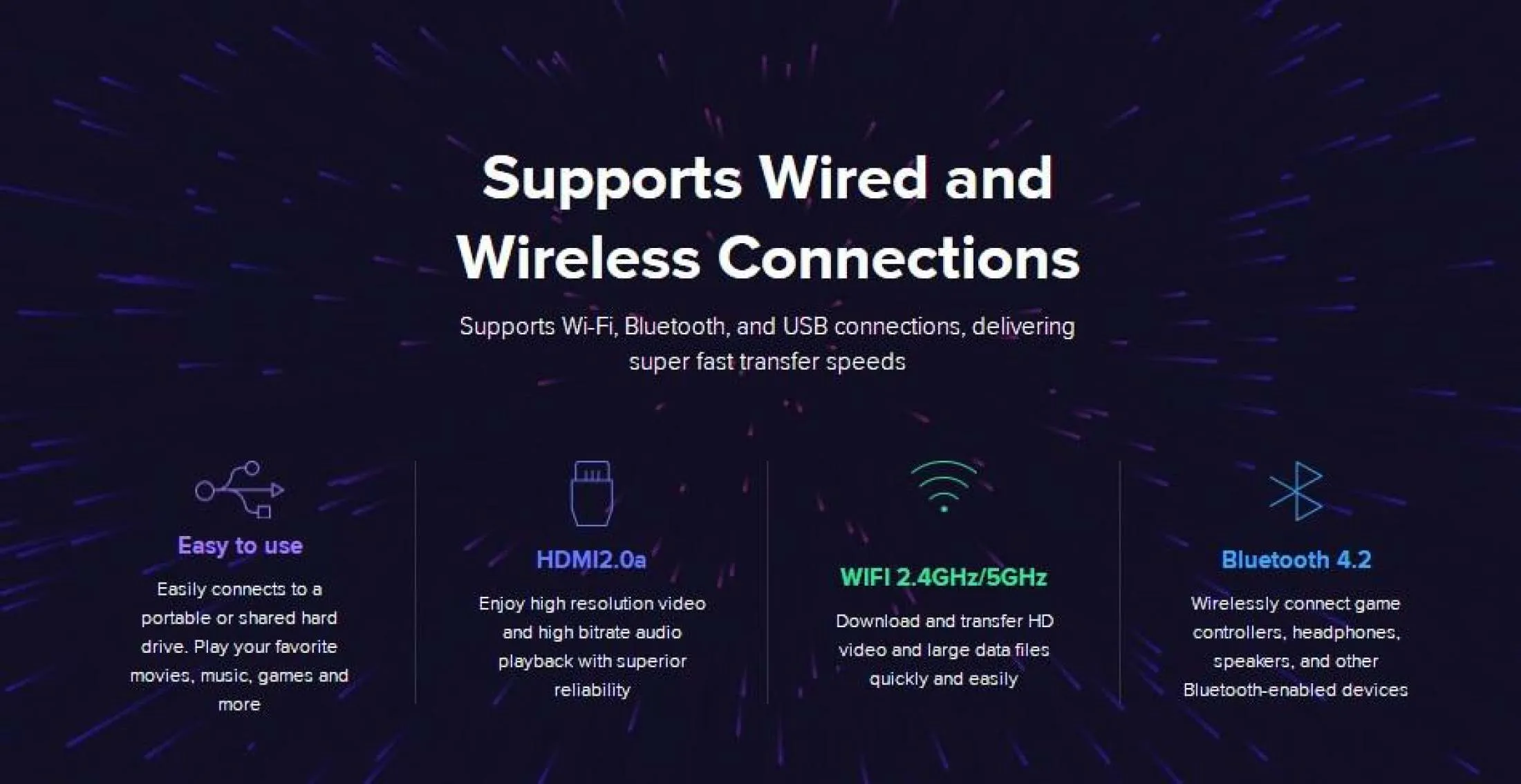 - -รองรับการเชื่อมต่อแบบมีสายและไร้สาย รองรับการเชื่อมต่อ Wi-Fi/Bluetooth/USB