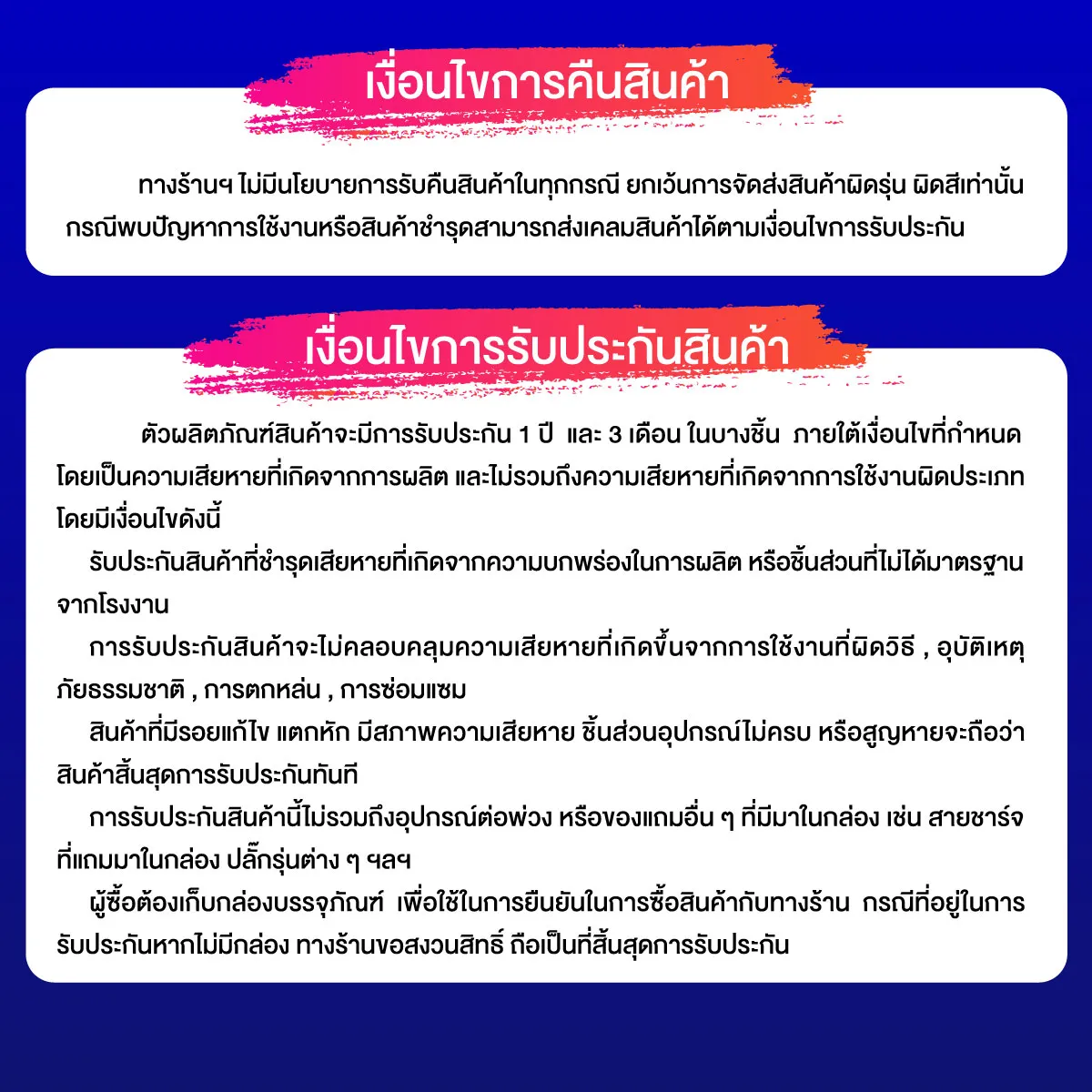 ⚠️ทางร้านขอปฏิเสธการรับเคลมคืนสินค้า ที่เกิดจากลูกค้าใช้งานสินค้าไม่เป็น ใช้งานไม่ถูกวิธี หรือการเสียหายจากผู้ใช้งาน ดัดแปลง หรืออุบัติเหตุ ตกน้ำ ไฟไหม้ และเหตุผลเปลี่ยนใจ ไม่พึงพอใจในสินค้าค่ะ ต้องกราบขออภัยอย่างสูงค่ะ ⚠️
