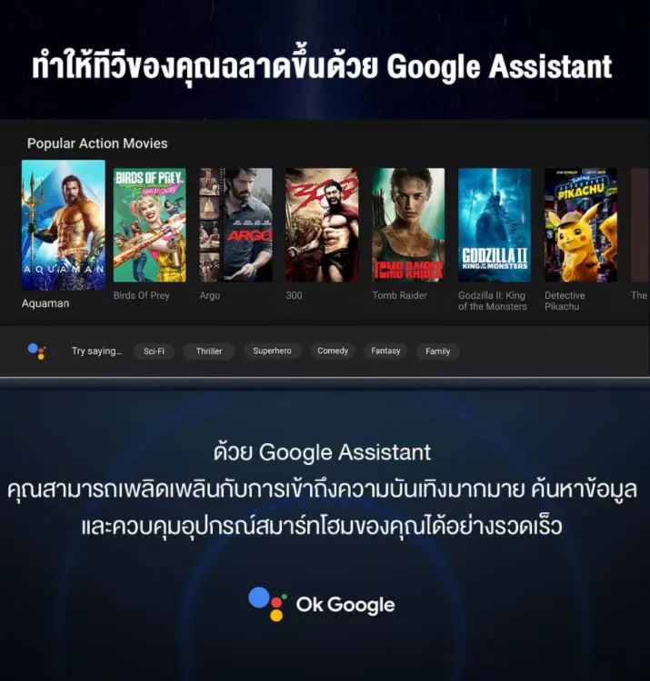 - -ภายในติดตั้ง Google Assistant และ Chromecast